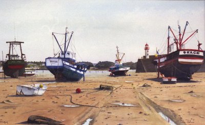 Autodidacte, on dirait qu'il est né un pinceau à la main. C'est dans les livres seuls qu'il a en fait appris son art : dessin précis, maîtrise parfaite des perspectives, harmonies délicates, singulière habileté à transcrire l'atmosphère d'un port, le charme un peu rétro d'un village de pêcheurs, ou l'accueillante quiétude d'une place inondée de soleil. Recherchant la sérénité, la lumière, l'angle d'observation rêvé ou idéal, Pierre BOHERS a fait du nombre d'or une règle de construction, n'abandonnant rien au hasard. Mais la liberté qu'il se donne transcende toute difficulté, toute raideur, procurant à ses aquarelles un frémissement de vérité. Une peinture aussi vivante ne peut forcer le respect.