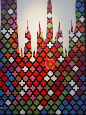 C’est un parcours bien singulier que celui de Roger Courtois. Du postimpressionnisme de ses débuts (1977-1980) aux « courtoisies » des dernières années, il s’est inscrit dans une démarche sans concession. Passant successivement du post-cubisme au surréalisme, étapes qui l’amenèrent à la figuration poétique, il a fini par s’inventer un langage géométrique autour de la notion de « peinture-objet » à travers laquelle il décline des formes simples, travaillées en aplats (carré, quadrilobe, pomme, coccinelle). Ces figures donnent lieu à toute une variation d’harmonies colorées. Dans son travail, Courtois recherche aujourd’hui à parfaire les effets de matière qui se révèlent d’un grand raffinement.